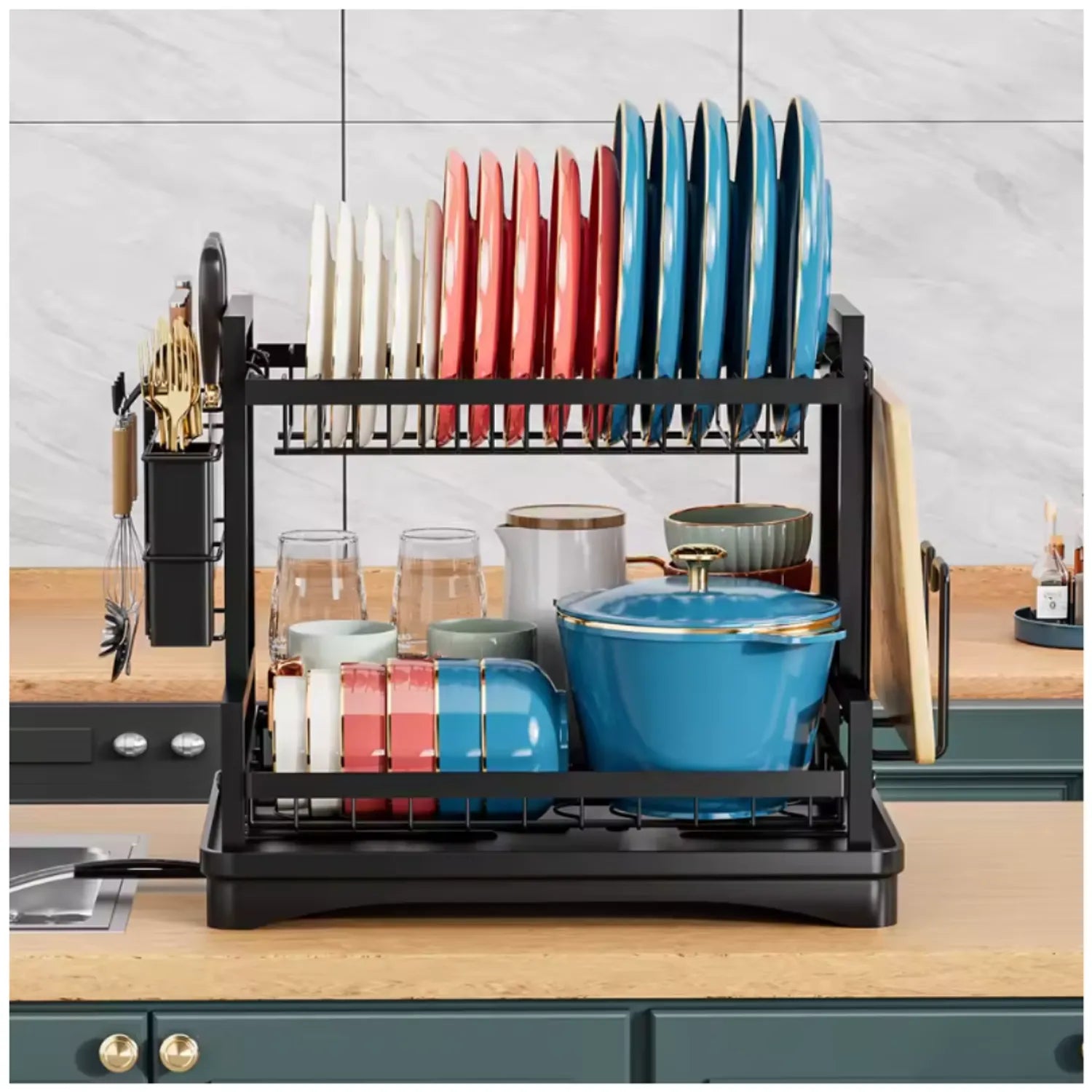 Organiza tu cocina con estilo y funcionalidad con el Escurridor Organizador Rack de 2 Niveles. Este robusto escurridor de metal está diseñado para ofrecer una solución eficiente para el almacenamiento de platos, tazas y utensilios. Con cada nivel equipado con una bandeja de drenaje, facilita la limpieza y previene la acumulación de agua en la encimera, manteniendo tu espacio ordenado y seco.