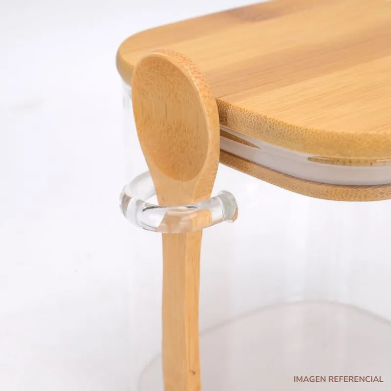 Frasco de almacenamiento con tapa y cucharita estilo Bambú