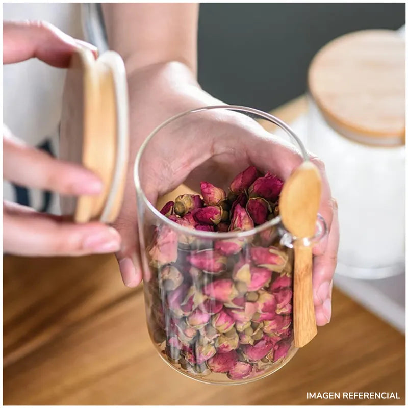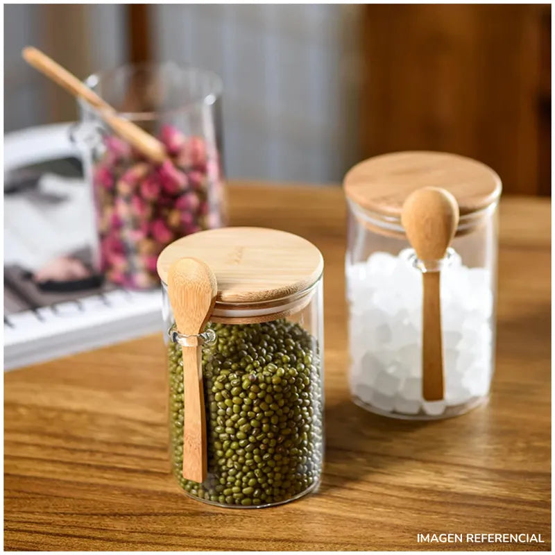 Frasco de almacenamiento con tapa y cucharita estilo Bambú