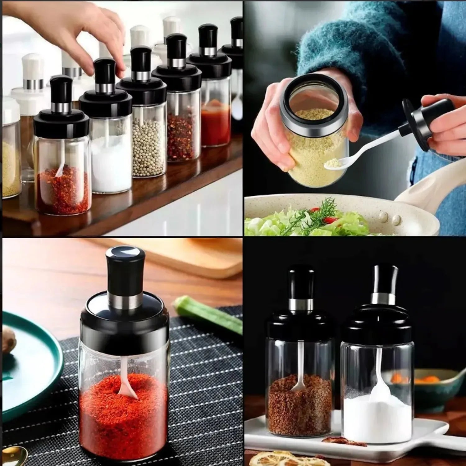 2. Juegos de contenedores de diseño delicado: cuchara de sal y tapa. Cada tarro de condimento viene con un anillo de sellado de silicona a prueba de fugas en su tapa